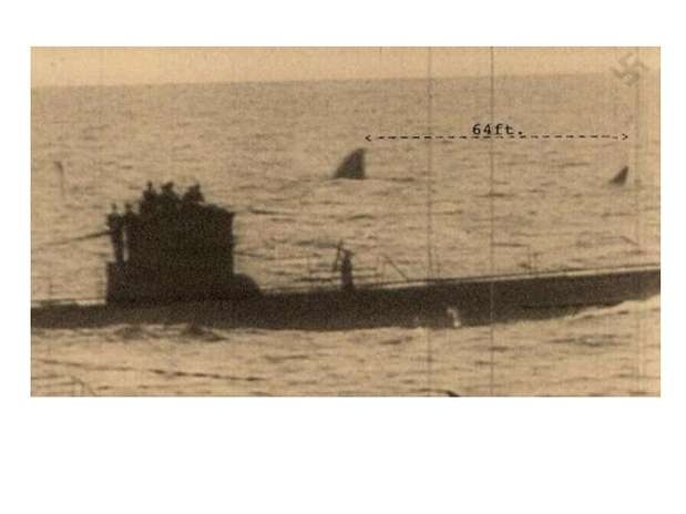 Muitos acreditaram que a foto mostra um extinto tubarão branco gigante próximo a um barco alemão. Na verdade, a foto foi uma montagem do Discovery Channel para divulgar um documentário sobre a espécie
